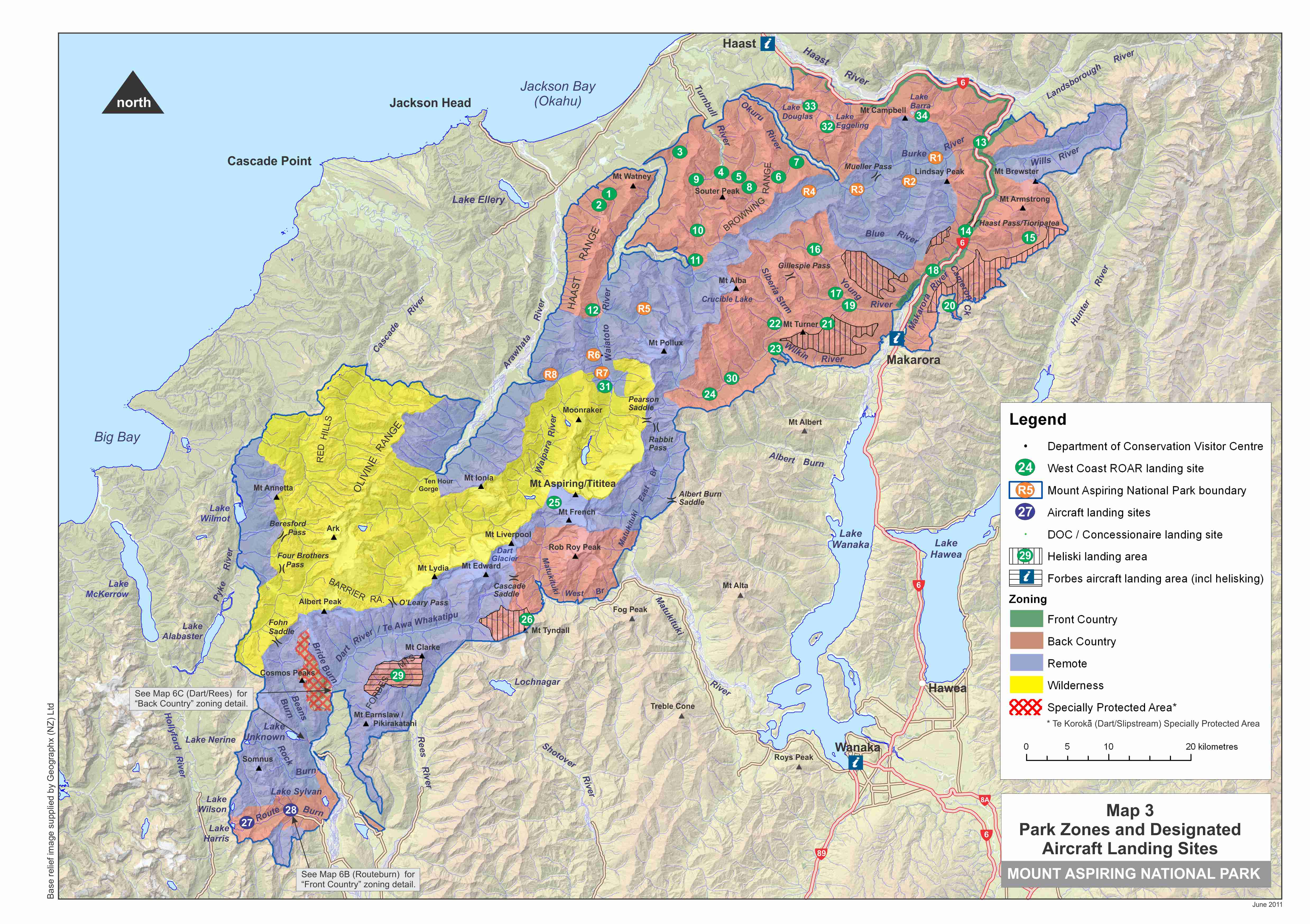 - Map 3 Park zones and designated aircraft landing sites (JPG, 982K)