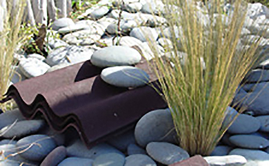An example of a homemade lizard habitat using corrugated iron, stones and tussock grass