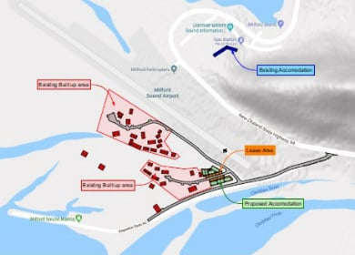 Construction of three staff accommodation buildings on lease areas B2 and H3 in the Cleddau Village which is an accommodation activity area designated under the Fiordland National Park Management Plan for staff accommodation at Milford Sound.