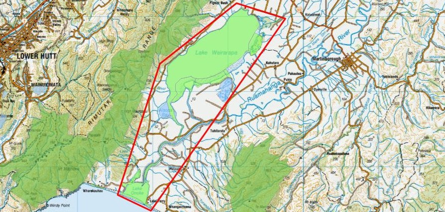 Location of covered by the new name: Lakes Wairarapa and Onoke and their adjacent wetland areas. This area is the largest wetland area in the southern North Island and is located approximately 5 km southwest of Featherston.