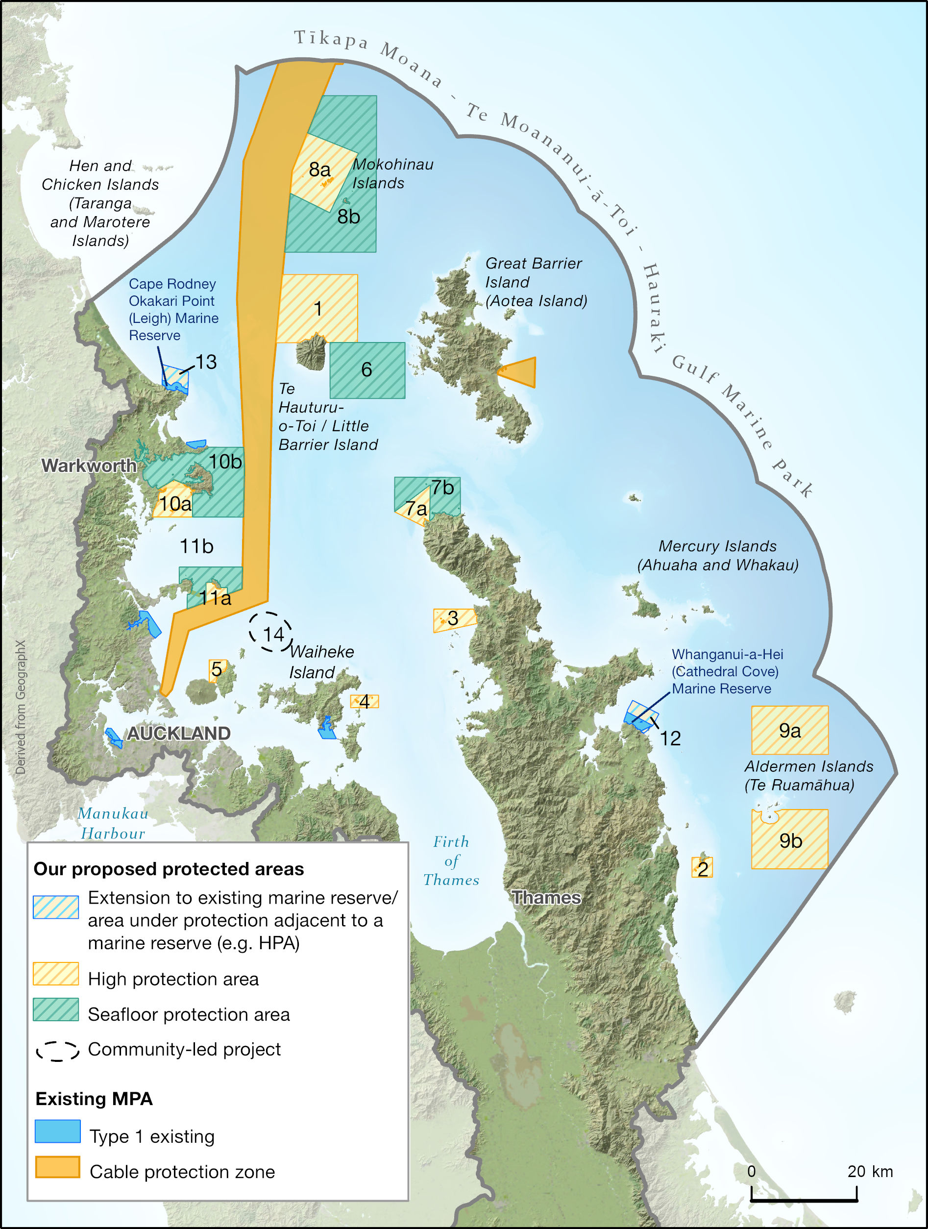 These will be adjacent to Whanganui-a-Hei and Cape Rodney Okakari Point marine reserves. These areas will be established as either two new High Protection Areas, or as extensions to the two existing marine reserves.