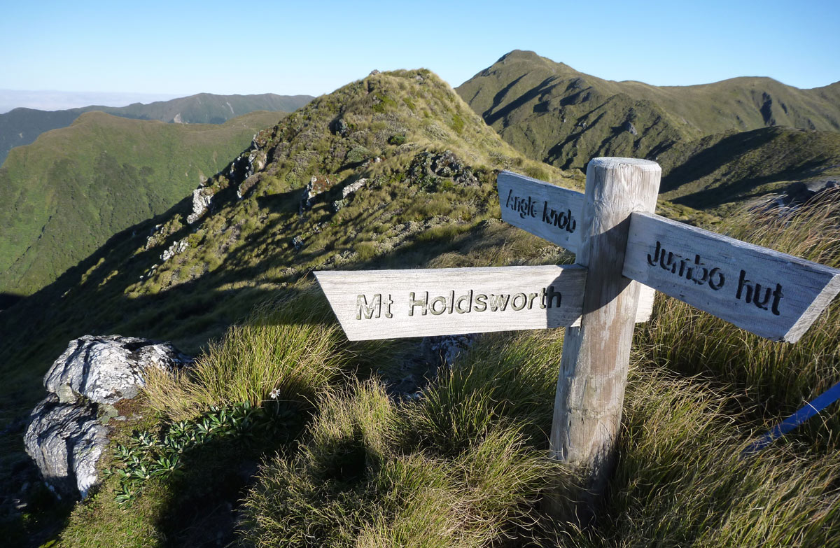 Follow the track leading north-east along the main ridge to the Mt Holdsworth trig (1470 m).