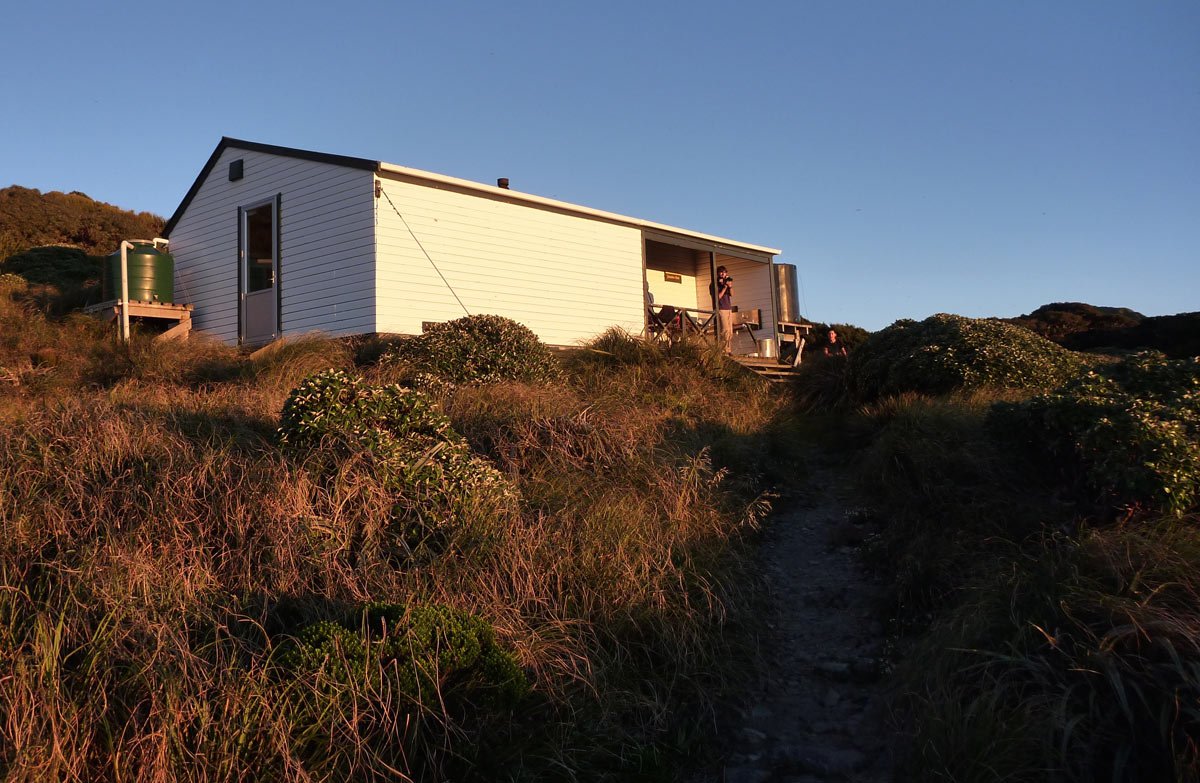 Past Mountain House Shelter the track climbs steeply through dense bush and out onto the open tops. Powell Hut is located on the bush edge.