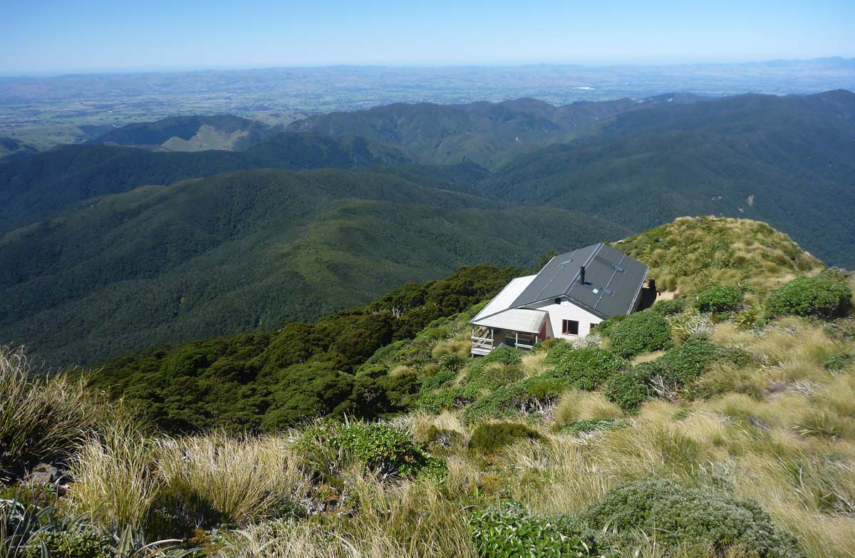 The main track to Atiwhakatu Hut is via Raingauge Spur. Descend on the benched track immediately below Jumbo Hut. Once in the bush, follow the track down Raingauge Spur to Atiwhakatu Hut. A rain gauge was once located in a clearing half- way down the ridge.