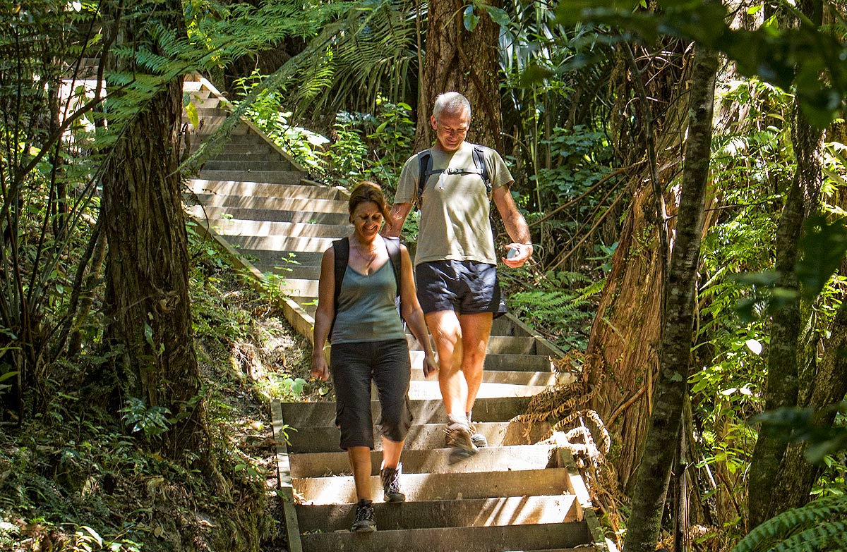 Walk to Tuteremoana along a well-formed track with a steady uphill climb. Pass a picnic area and hihi feeding station a third of the way up. There is a toilet 10 minutes from the summit. This is an ideal track for all ages and fitness levels.
