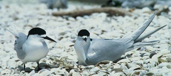 White-fronted tern pair nest on the shell bank
