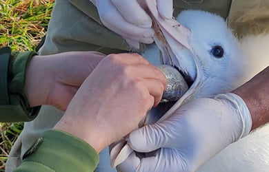 Supplementary feeding of an albatross