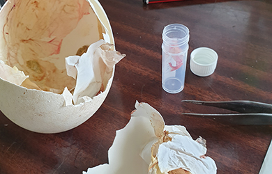 After chicks make a hole in the tough shell of their egg, flies can lay maggots on the egg or the young chick ('flystrike') which can lead to their death. Staff hatch all the chicks in incubators leaving a dummy egg in the nest. The nest is sprayed with Avian Insect Liquidator (AIL) when the hatching egg is removed and on return of the day old chick who has had AIL applied also. This has significantly reduced fly-strike.