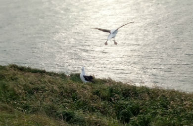 Toroa chicks fledge during September, when they're around 7.5 months old, an average of 240 days (range 219 – 256 days). The oldest few chicks tend to depart before the younger ones, but it isn't all about age. Some chicks are at sites more exposed to favourable take off winds, so you might spot these chicks going to sea before older chicks of the same year. Once they've left, they are at sea for 4 - 10 years.