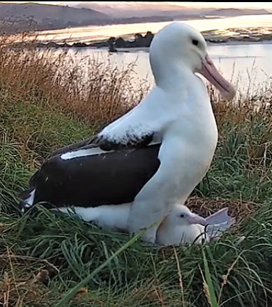 When the parents realise their chick has gone, they'll spend the following year building up their energy for the next breeding attempt. The great albatross species (wanderers and royals) breed every two years as it will have taken the two parents all their energy to raise the chick to fledging. This year's parents will not be in condition to breed again during this year.