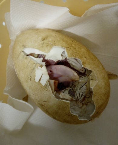 After 13 days, we replace the egg with a dummy egg. If possible, the real egg will be removed to another nest. But if no foster nests are available, we place them in the incubator. We will also consider supplementary feeding the adult on the nest at around 16–18 days.