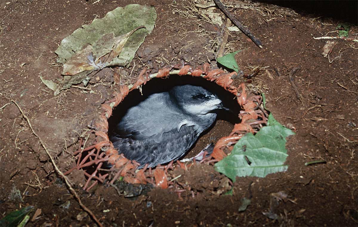Artificial burrows are installed for known breeding pairs. These burrows are blocked off over winter when the petrels are away to ensure that broad-billed prions do not take over in their absence.