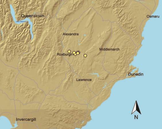 This map shows the known locations of Teviot flathead galaxias, as at 2013.