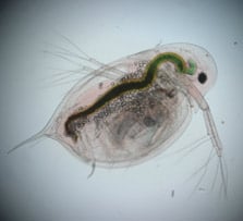 If you haul a very fine-meshed net through the water, tip your catch into a jar and hold it up to the light, you may see some of the larger species of zooplankton swimming jerkily up and down. To see more, such as the incredible complexity of their eyes, limbs and hearts, you will need to use a microscope.