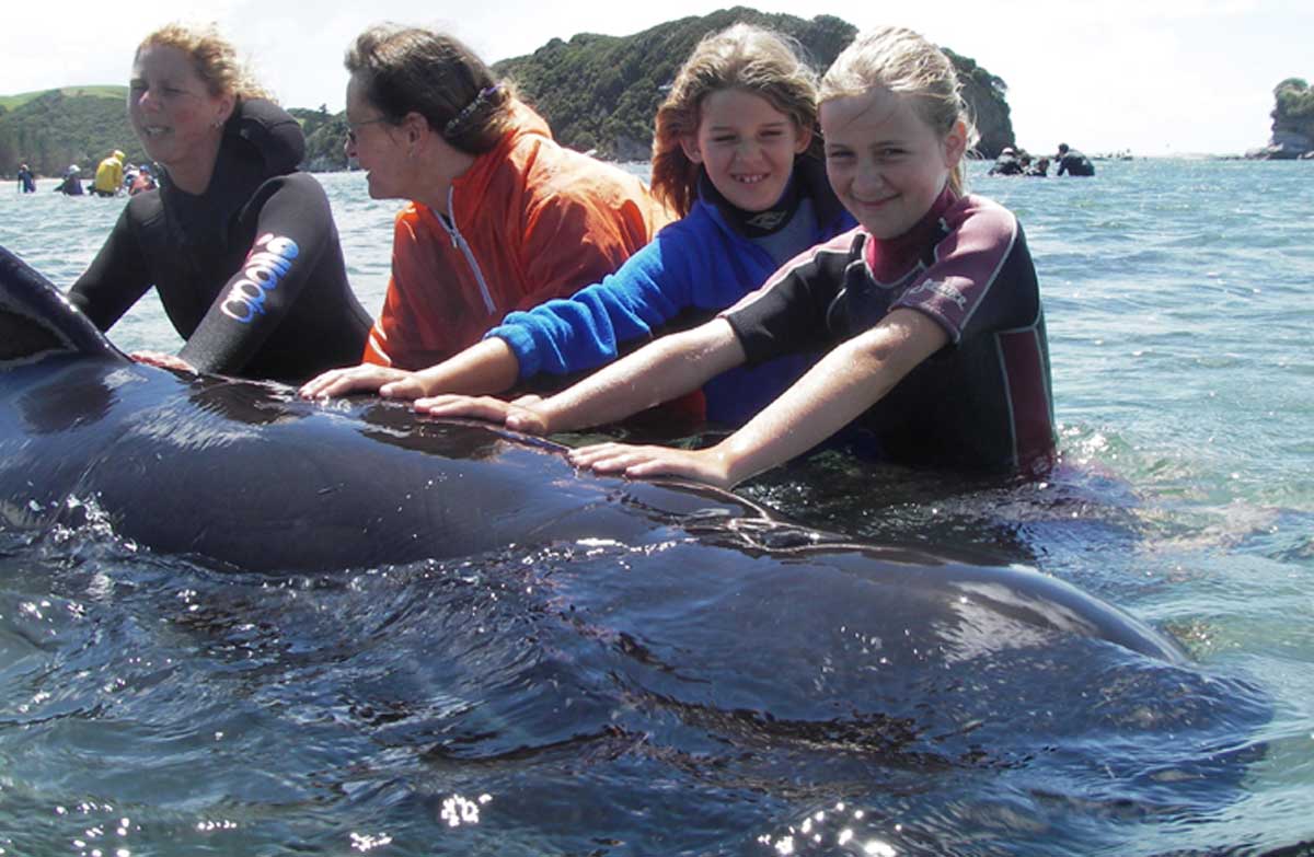 To ascertain if an animal is alive, gently touch the blowhole, if no response, very gently touch the edge of the eyeball, if no response is seen, the whale is most likely dead. Dead whales will be checked and marked by DOC staff.