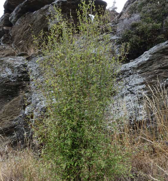 Olearia hectorii primarily occupies wet, cold valley floors and hill slopes, often where mountain and hill-country streams disgorge onto the plains.