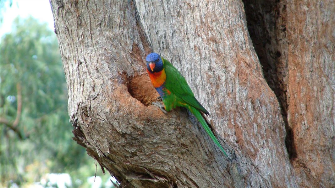 Rainbow lorikeets look very similar to the more common eastern rosella. The main distinguishing feature is the lorikeets' blue head.