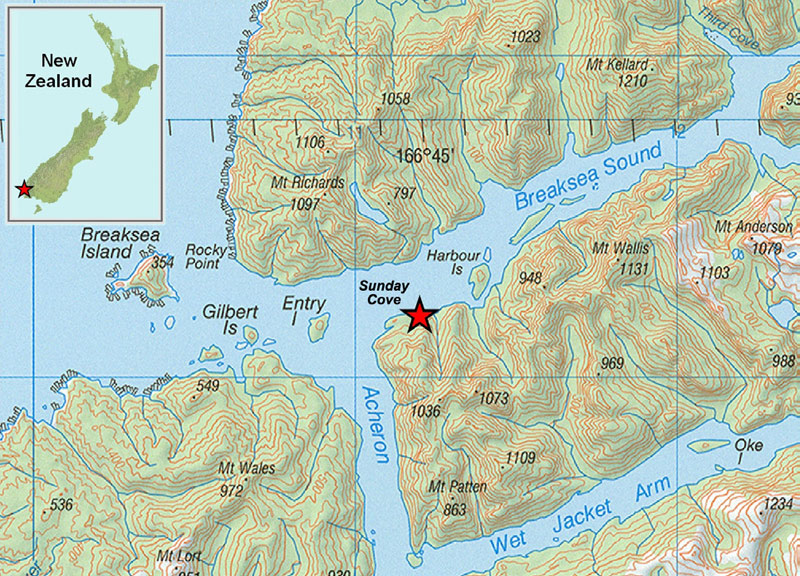 Until 2010, Undaria had apparently not yet reached Fiordland waters. In April, 2010, a single mature Undaria plant was found in the remote Sunday Cove in Te Puaitaha/Breaksea Sound and subsequent investigation uncovered a small area of growth.