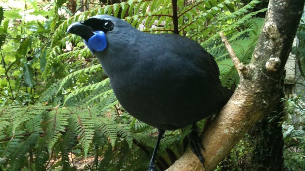 The kōkako is a forest songbird with an organ-like call, and is significant in Māori legend for helping Māui quench his thirst while he battled the sun.