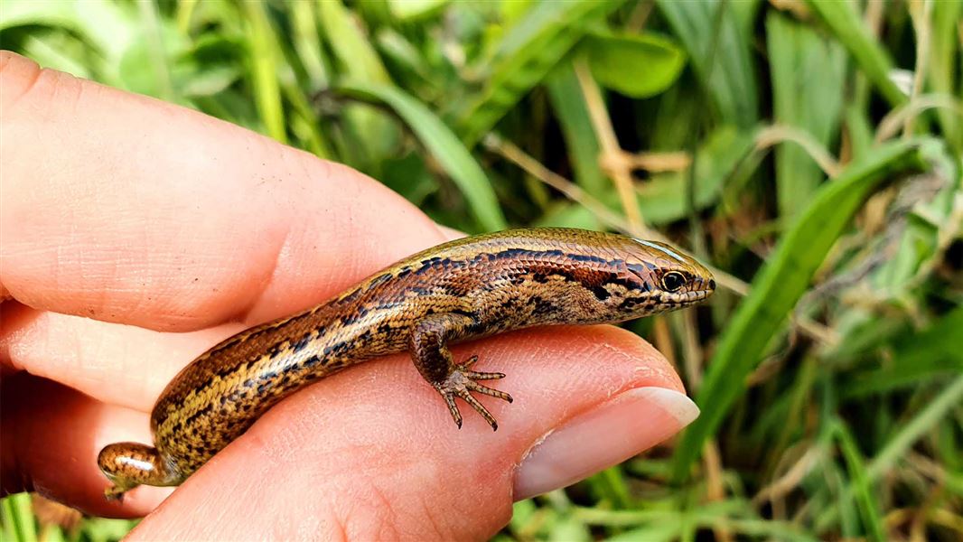 The Kapitia skinks, found only in a 1 km coastal strip near Hokitika, were badly impacted by Cyclone Fehi in 2018 with 50 skinks taken in by Auckland Zoo at the time.
