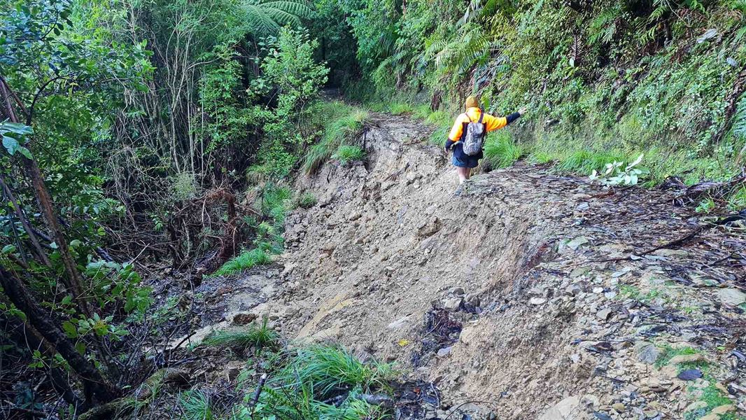 DOC Western South Island Operations Director Mark Davies says the Heaphy Track has considerable storm damage between Kohaihai and the Heaphy Hut, with sections of track washed out, fallen trees and a large slip behind the staff hut at the Heaphy River mouth.