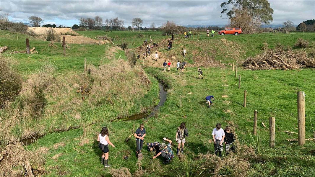 More than 280 students aged 10 to 13 from Paterangi School, Puahue School, Ōhaupō School and Ngahinapōuri Schools collectively planted 4000 plants at four sites in the Manga-o-Tama catchment.