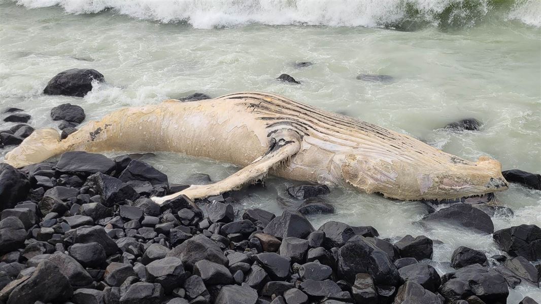 The carcass of the 9.7 m long juvenile humpback was first seen floating off the coast of Warrington on 15 July. On 22 July it was found washed up at a remote Omimi beach.