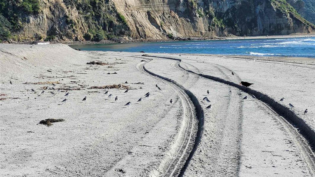 CCTV footage of the incident, which occurred on 26 July, shows a dark coloured four-wheel drive vehicle being driven along the beach at Dotterel Point at approximately 12.20 am. The vehicle driver’s actions cause the gulls to scatter, before the driver and vehicle are seen looping back along the beach.