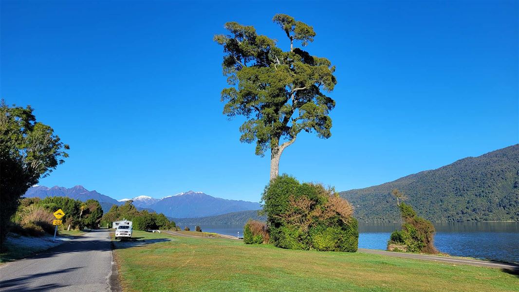 The tree is thought to be several hundred years old and has provided shade for generations of visitors to the picturesque lake about 20 km inland of Hokitika.