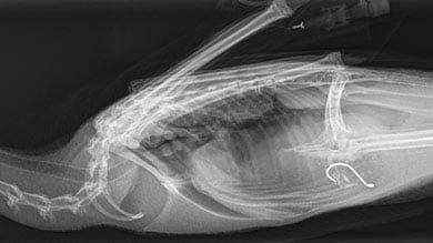 Pūteketeke with fishhook x-ray