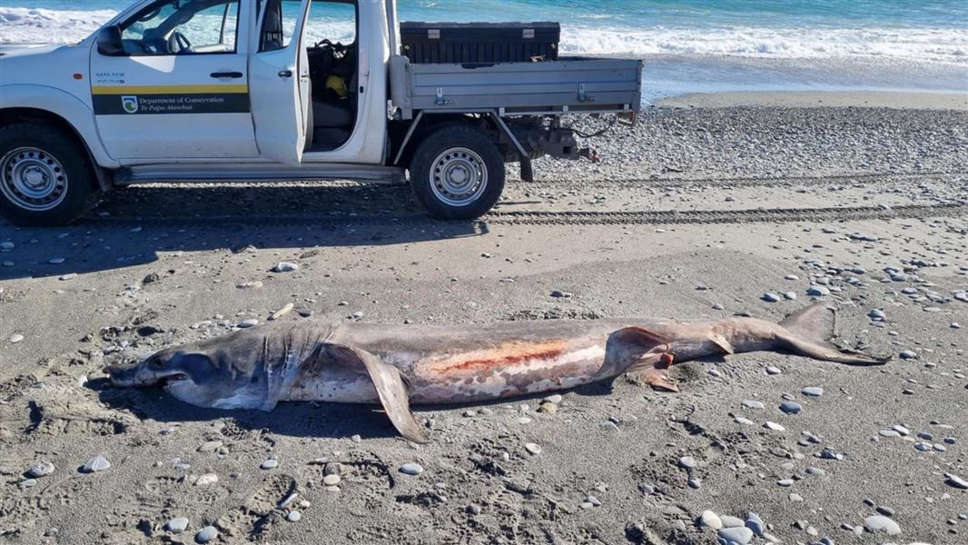 The body of a rare basking shark has been found at Gillespies Beach in South Westland and has been removed from the beach by DOC for preservation and further study at Auckland War Memorial Museum.
