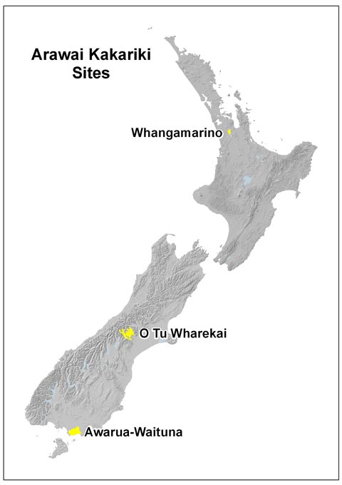 View a map showing the locations of the three Arawai Kakariki wetland restoration projects.