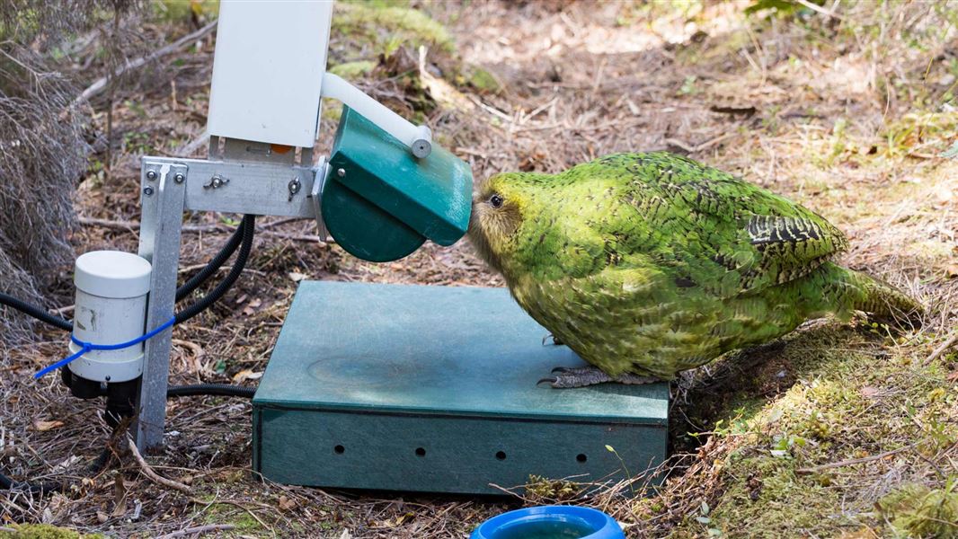 Most years, we give kākāpō specially formulated food during spring and summer. Supplementary feeding ensures that kākāpō are healthy enough to breed and raise chicks.
