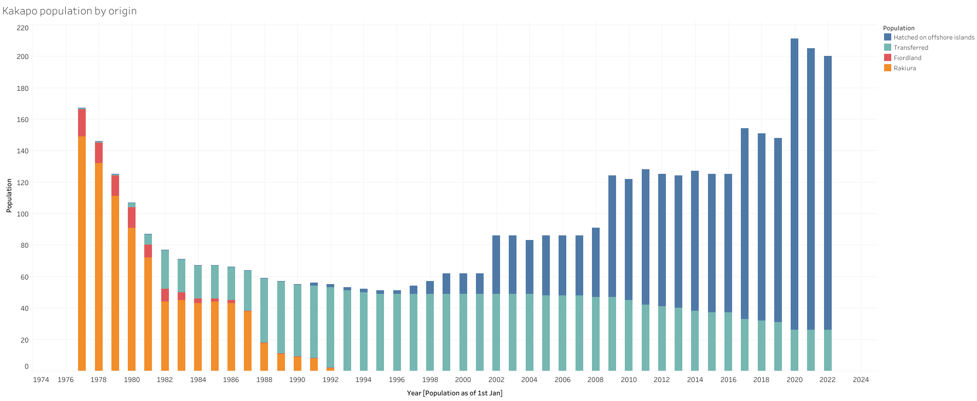 By 1995, although at least 12 chicks had been produced on the islands, only three had survived. The kākāpō population had slumped to 51 birds. The critical situation prompted an urgent review of kākāpō management in New Zealand.