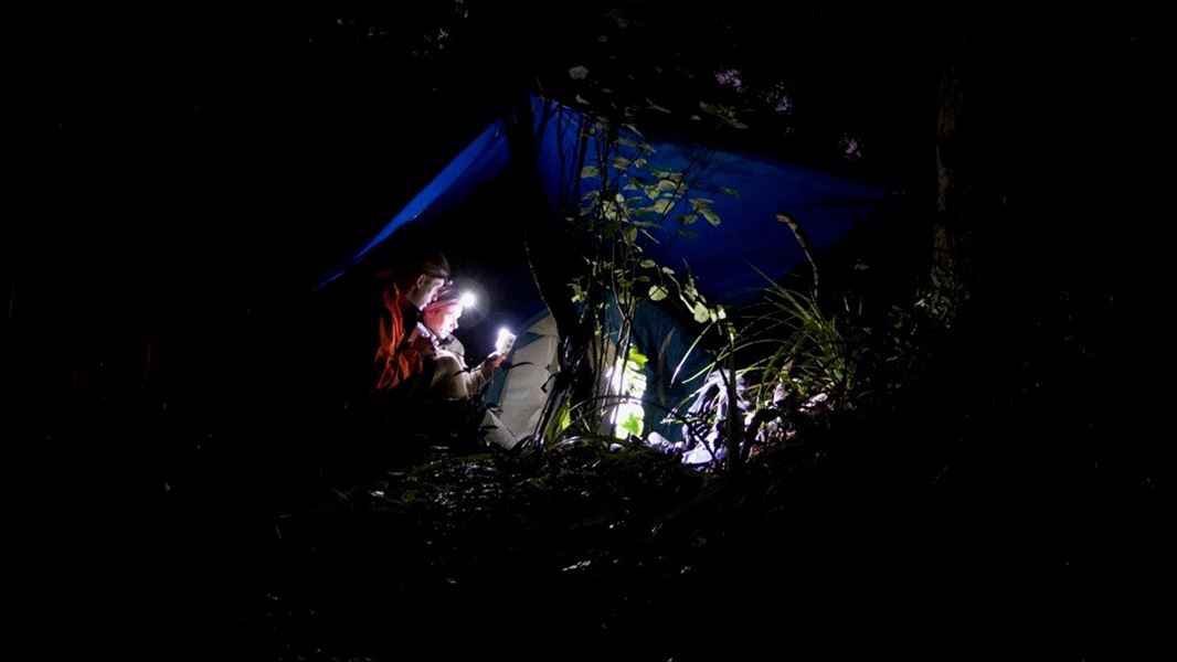 The data logger connects to a device at the tent, helping us detect when the kākāpō mother leaves her nest. That’s the best time to check on the chick.