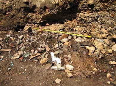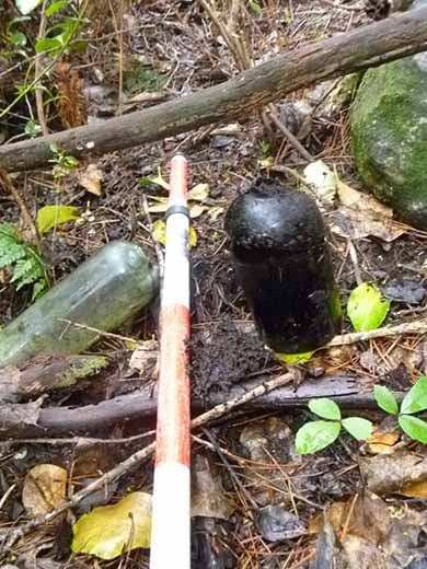 Example of historic artefacts at the Seven Mile Site, historic bottle dump.