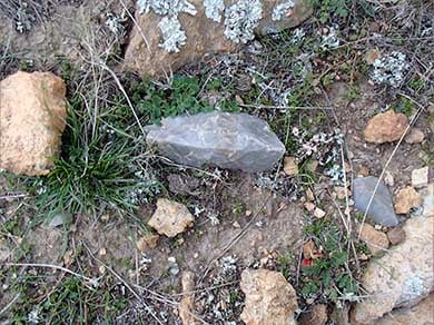 A piece of obsidian (volcanic glass) worked to make a stone tool