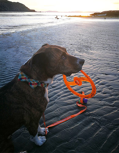 Keeping a dog toy close so you can keep their attention when there might be a distracting oystercatcher or other bird around