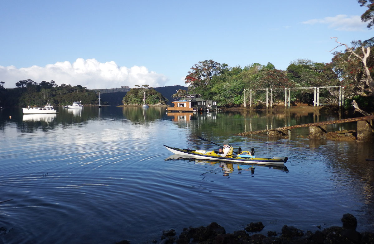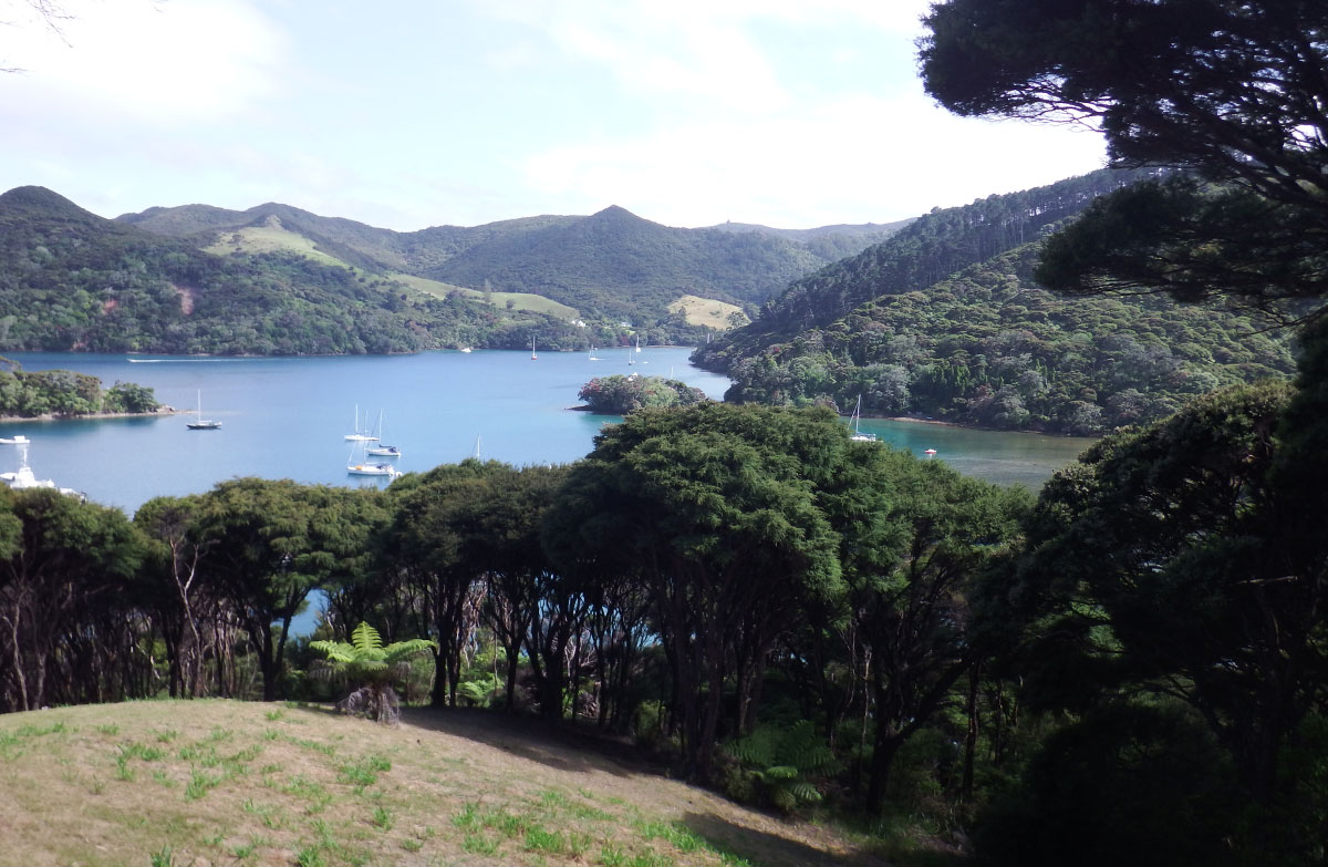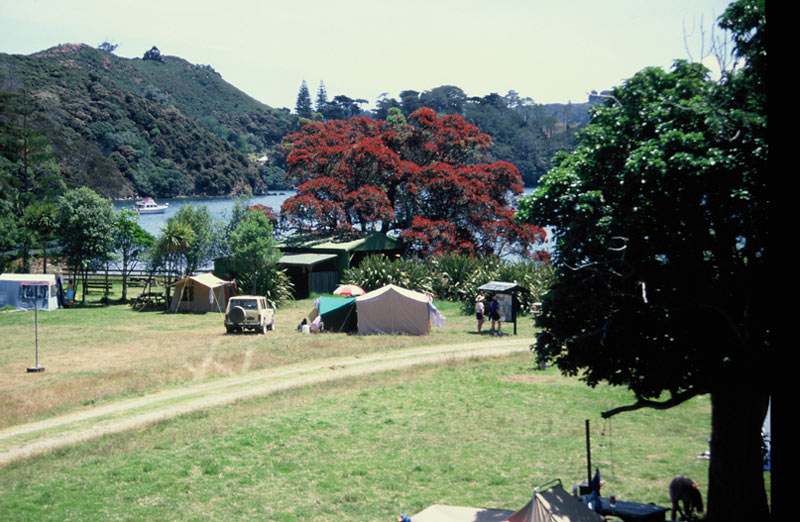 Camp in a sheltered bay amongst beautiful pohutukawa trees.