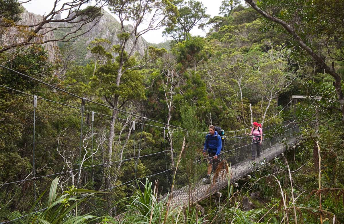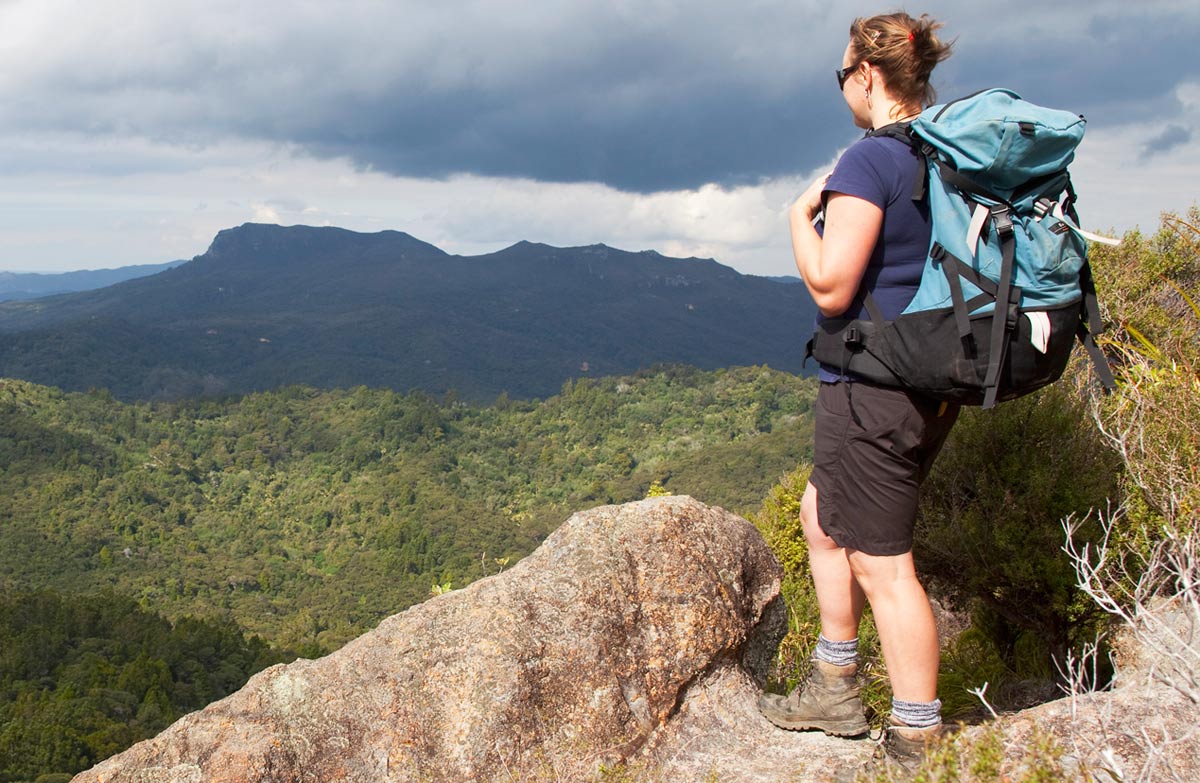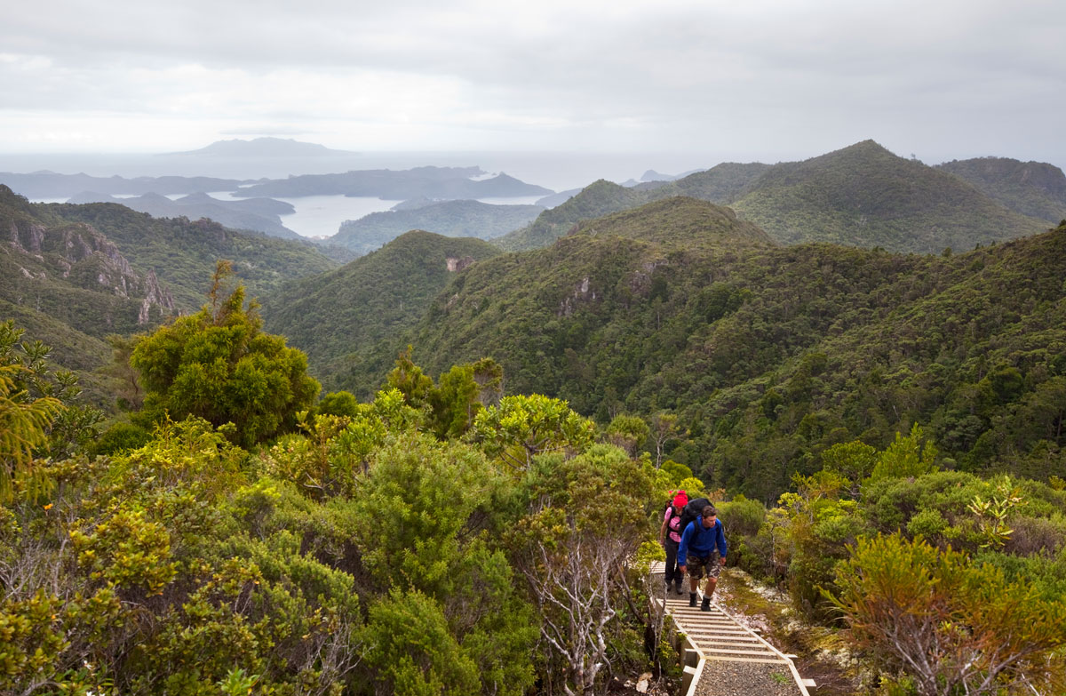Alternative access to the Mt Heale Hut is possible from the east, via Windy Canyon and Palmers Track, accessed from Aotea Road at the top of Whangapoua Hill. This section is fully bridged and is the shortest and easiest option for the first day. Here a steady climb takes you through the sheer rock faces of Windy Canyon with superb views of Okiwi Basin and Whangapoua estuary to the north, and Kaitoke and Medlands Bay to the east.