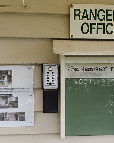The key to the bach is located in a lock box by the door of the ranger's office. The access code to the lock box will be sent to you in your booking confirmation email. Return the key at the end of your stay.