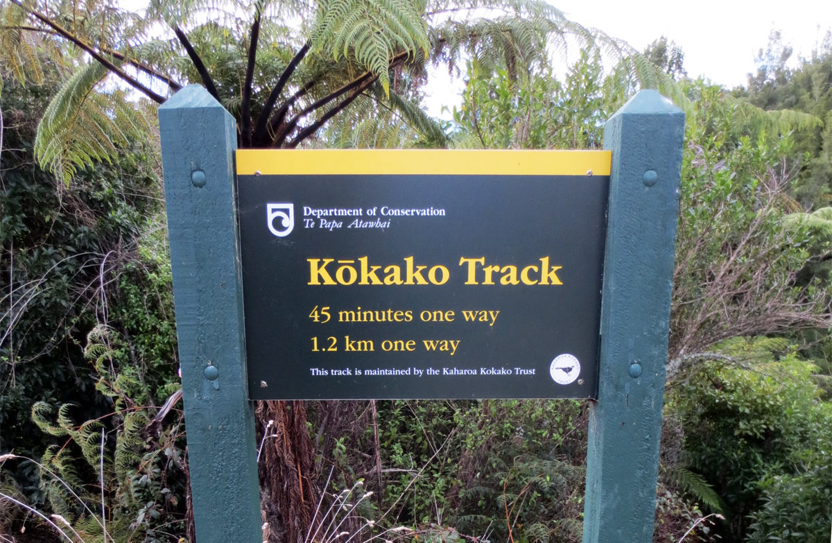 There are two carparks along Kapukapu Road. The first carpark is a picnicking area with a shelter. It parks about 10 cars. There's also information about the recent history of the reserve and efforts to restore this local kōkako population by Kaharoa Kōkako Trust, a volunteer-based community conservation group.