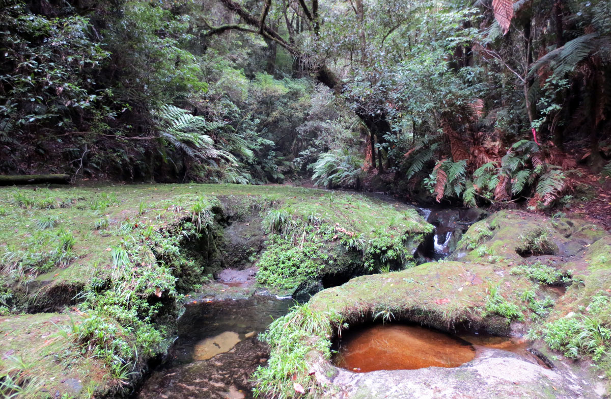 The track is approximately 45-minutes. It's a gradual walk downhill through lush native forest to Onaia Stream. This is a gentle coursing stream with minor waterfalls, that flows through a steep incised narrow gorge.
