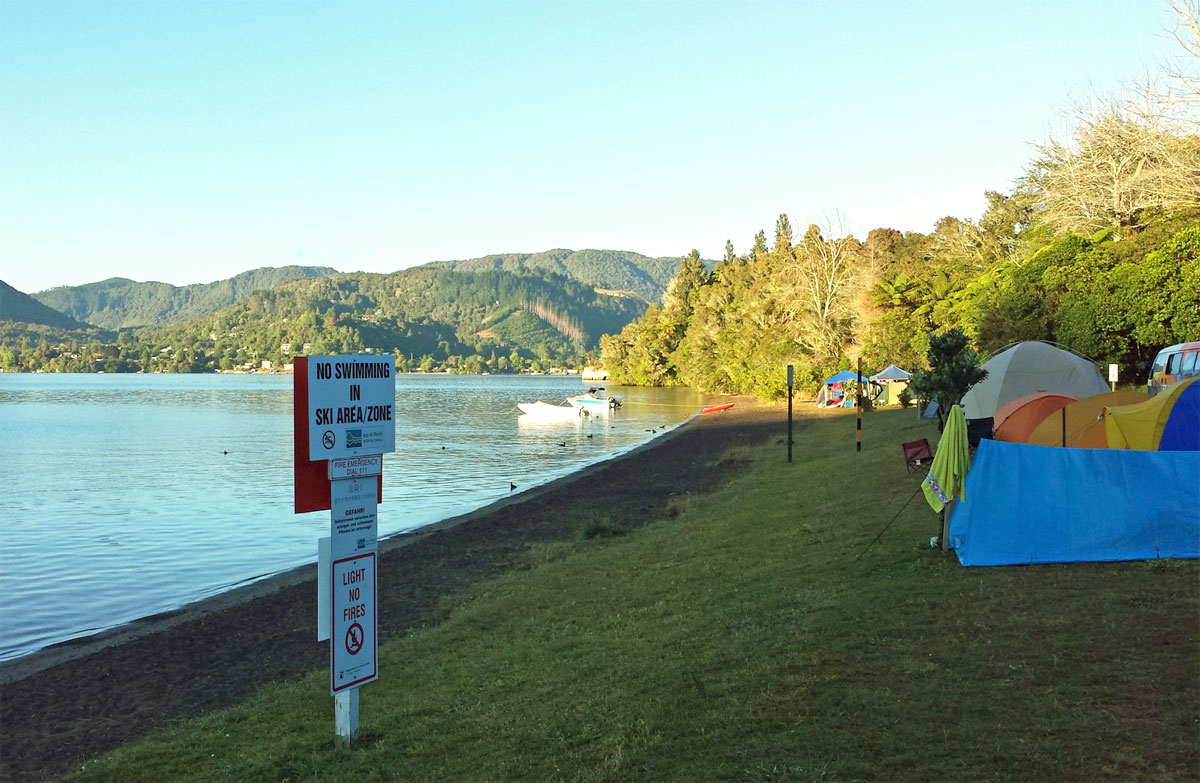 - Note that Boyes Beach amenity area and campground is managed by Rotorua Lakes Council. Camping in tents is not permitted at Boyes Beach.
