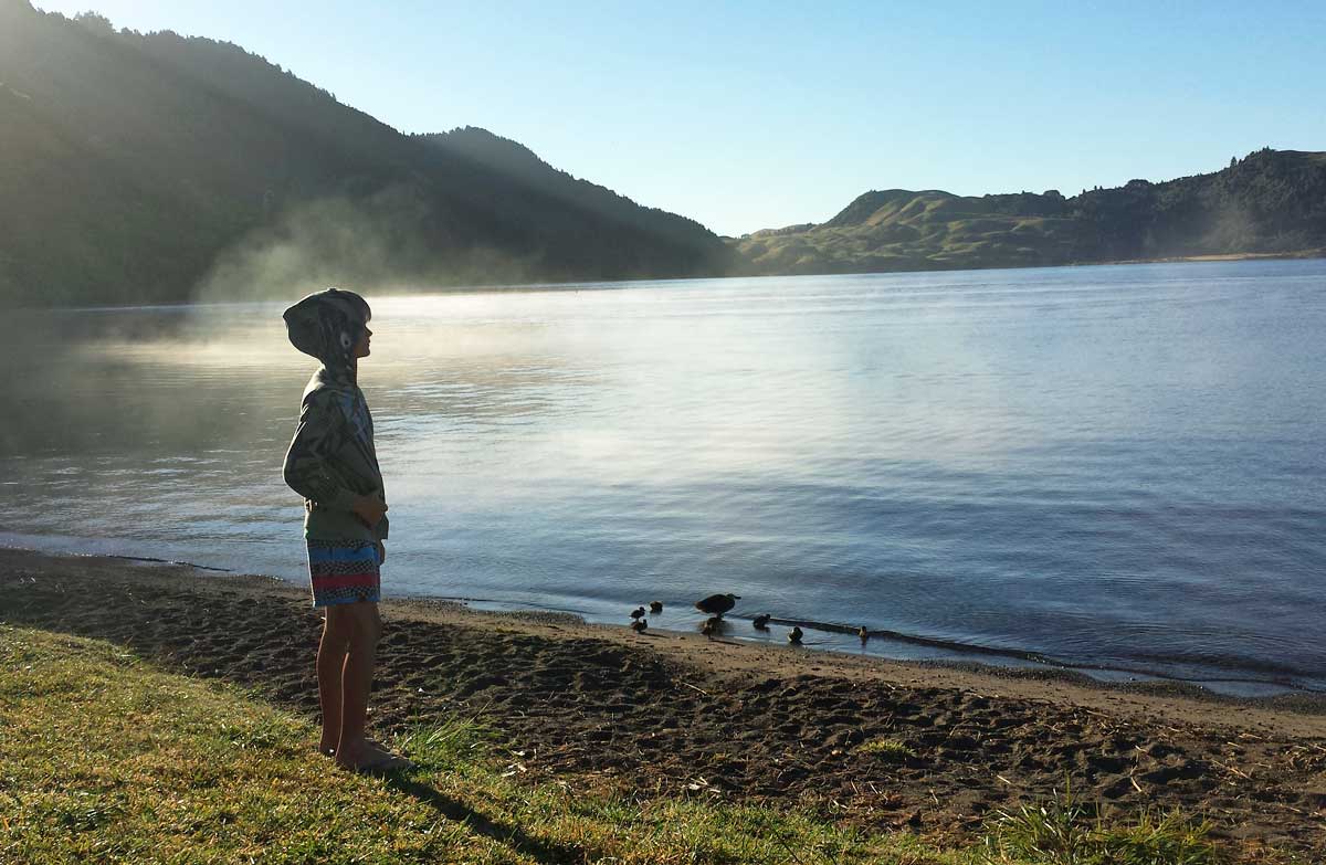 Fish along the shores of Lake Ōkāreka. Note: Fishing on this lake requires a licence from Fish and Game Eastern Region.