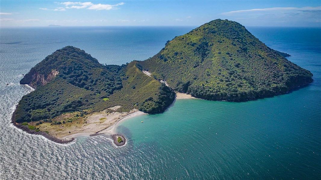 The 143-hectare island is a remnant volcanic cone which has eroded, leaving two peaks. This is still an area of volcanic activity and there are hot springs on the island in Sulphur Valley and Sulphur and McEwans bays.