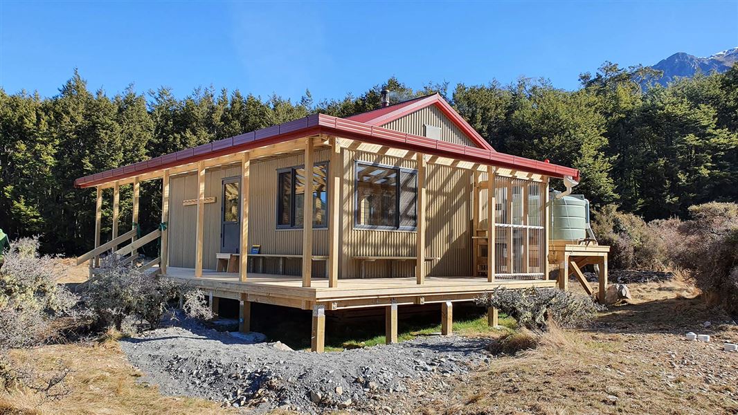 This new Casey hut opened in 2020 and replaces the original Casey Hut which burnt down in 2015. The new hut site is approximately 800 m east of the old site, on a terrace overlooking the Poulter River.