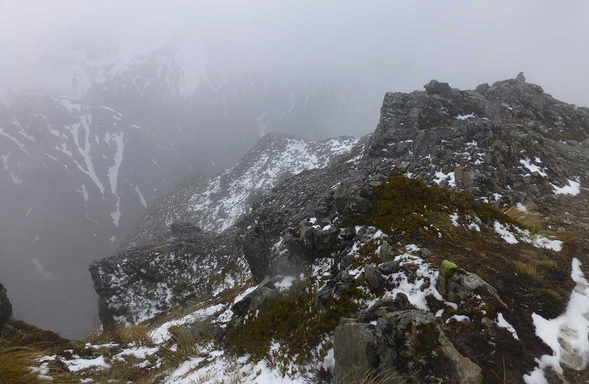 Follow the ridge that runs between Rough Creek and Avalanche Creek catchments. From the bushline a worn trail leads through tussock and subalpine vegetation. Beware of steep drop-offs as you travel along this narrow ridge. Yellow markers on stakes mark the route all the way to the summit.