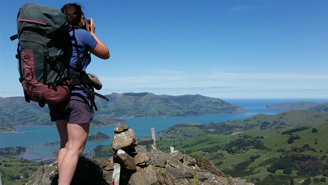 This easy tramping track goes up to Montgomery Peak in Montgomery Scenic Reserve. It has stunning views of the peninsula and Akaroa Harbour.