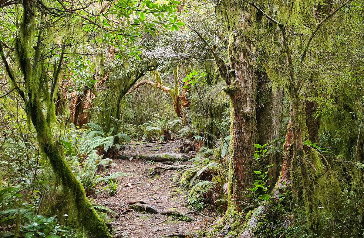 From the carpark the track climbs through a remnant of mountain tōtara forest to reach the summit of Lavericks Peak (755 m). Nearing the summit, trees are hung with weeping moss, creating a 'goblin forest' atmosphere. This is appropriate to the loose translation of the name Ōtepātotu, 'place of the fairies'. The summit offers grand views of the Akaroa harbour and the surrounding peaks.